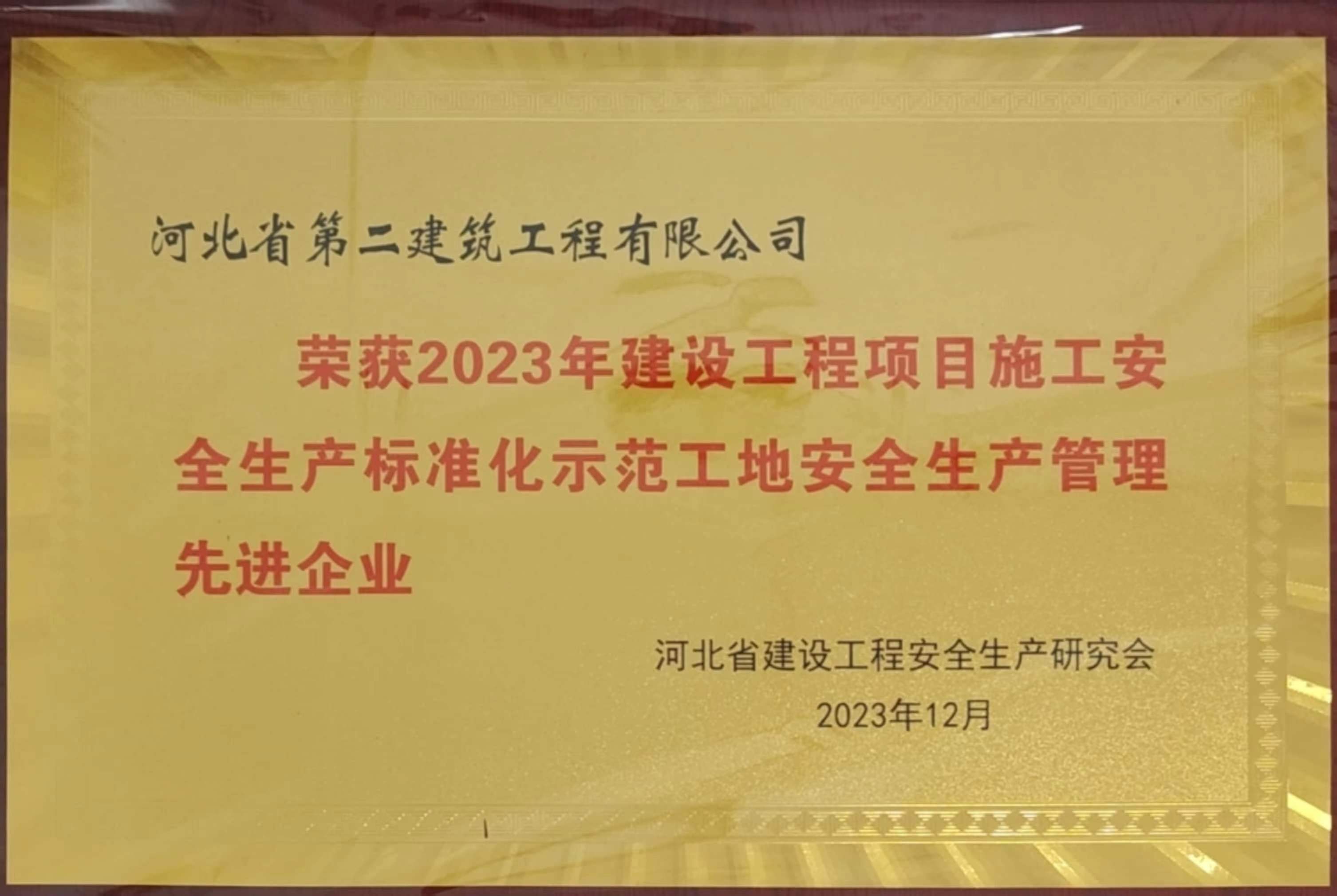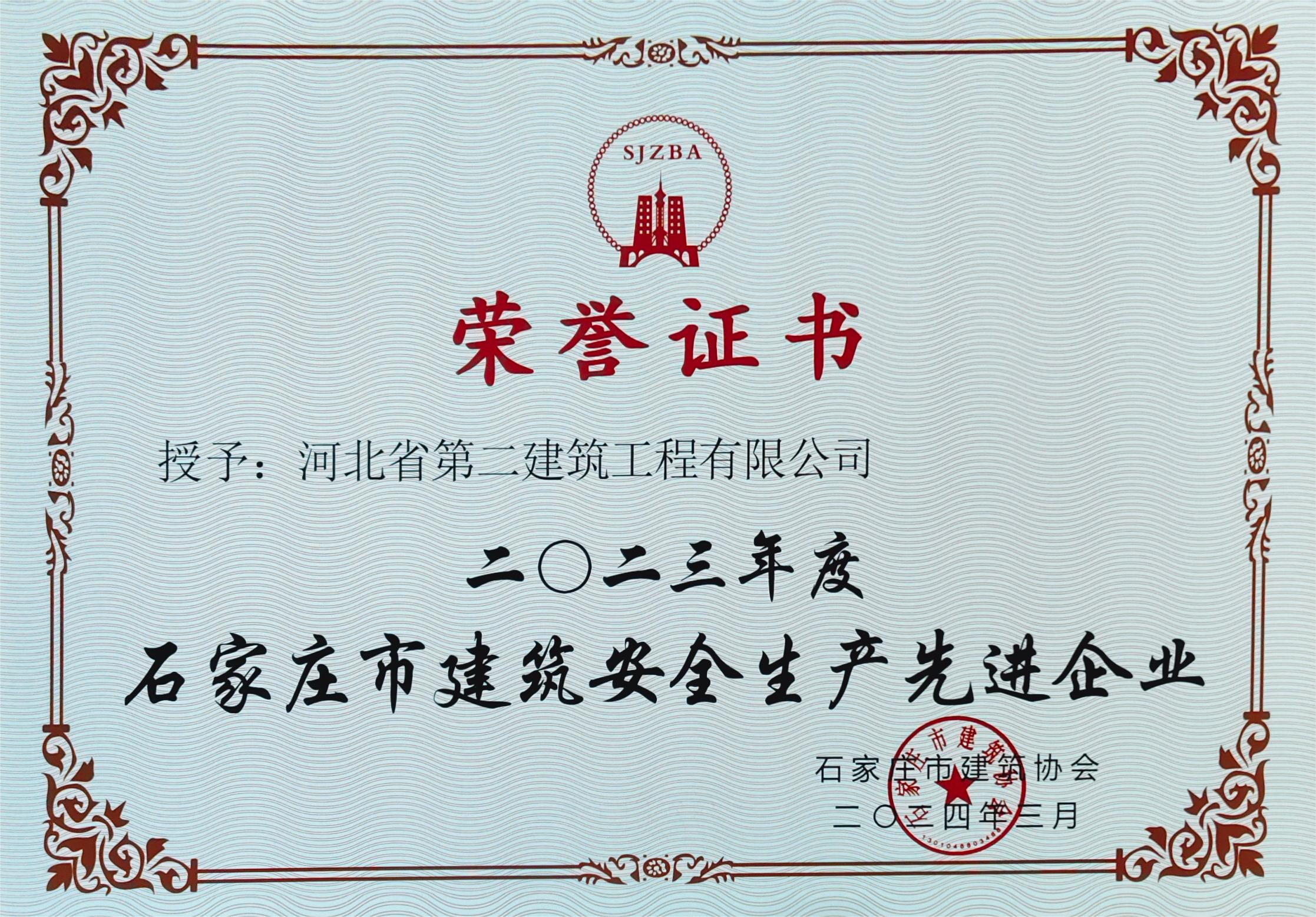 河北二建:2023年度石家庄市建筑安全生产先进企业