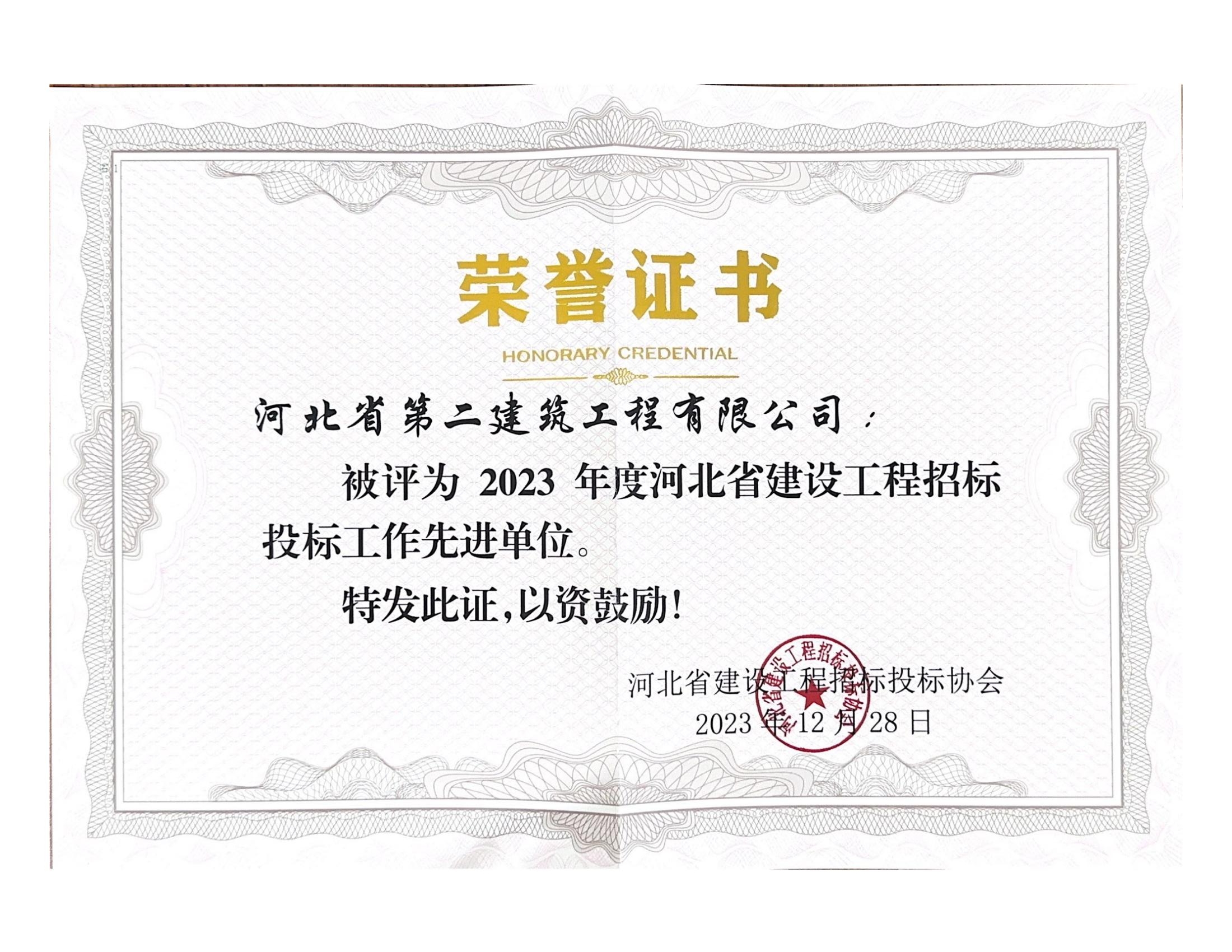 公司荣获2023年度河北省建设工程招标投标工作先进单位