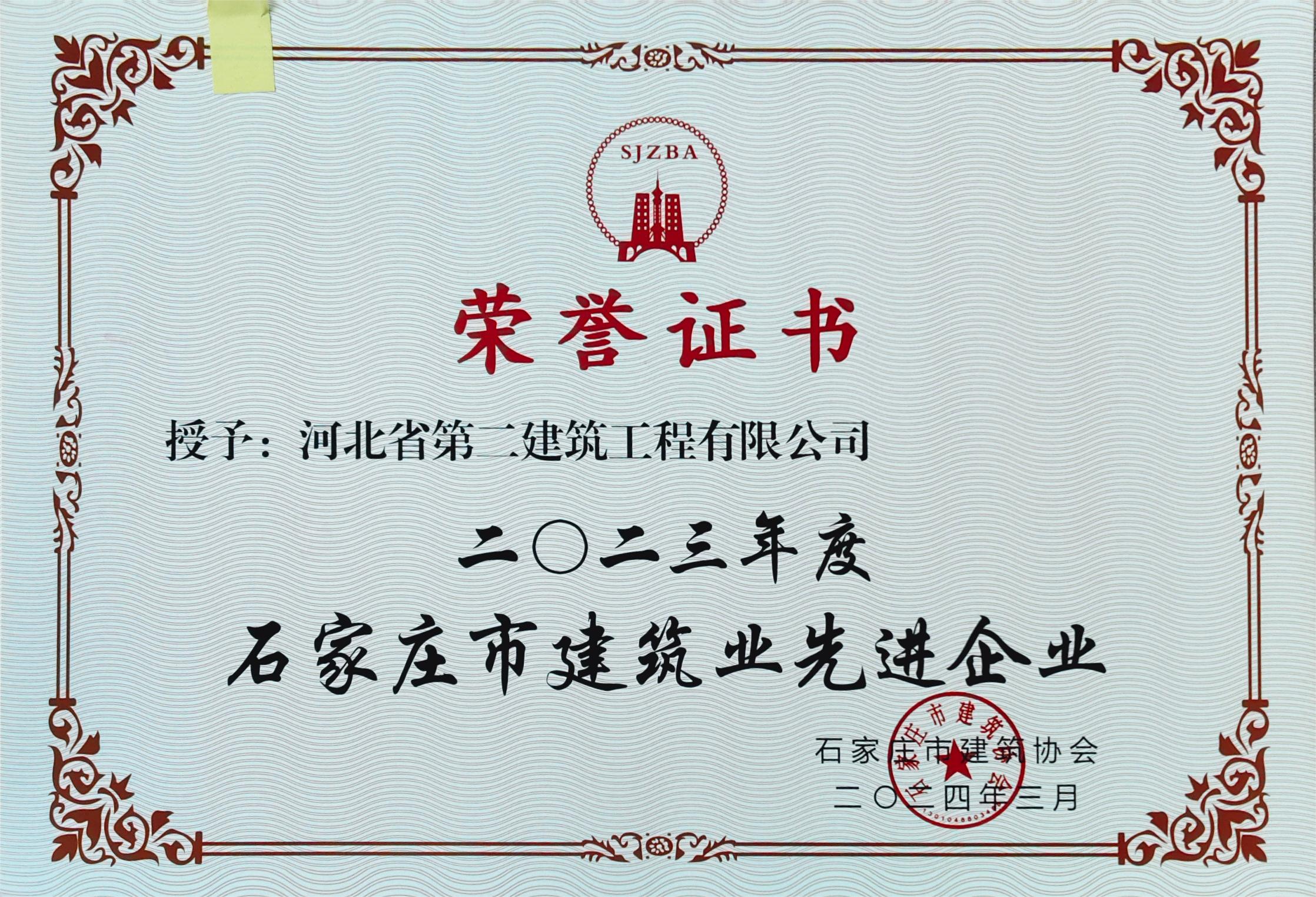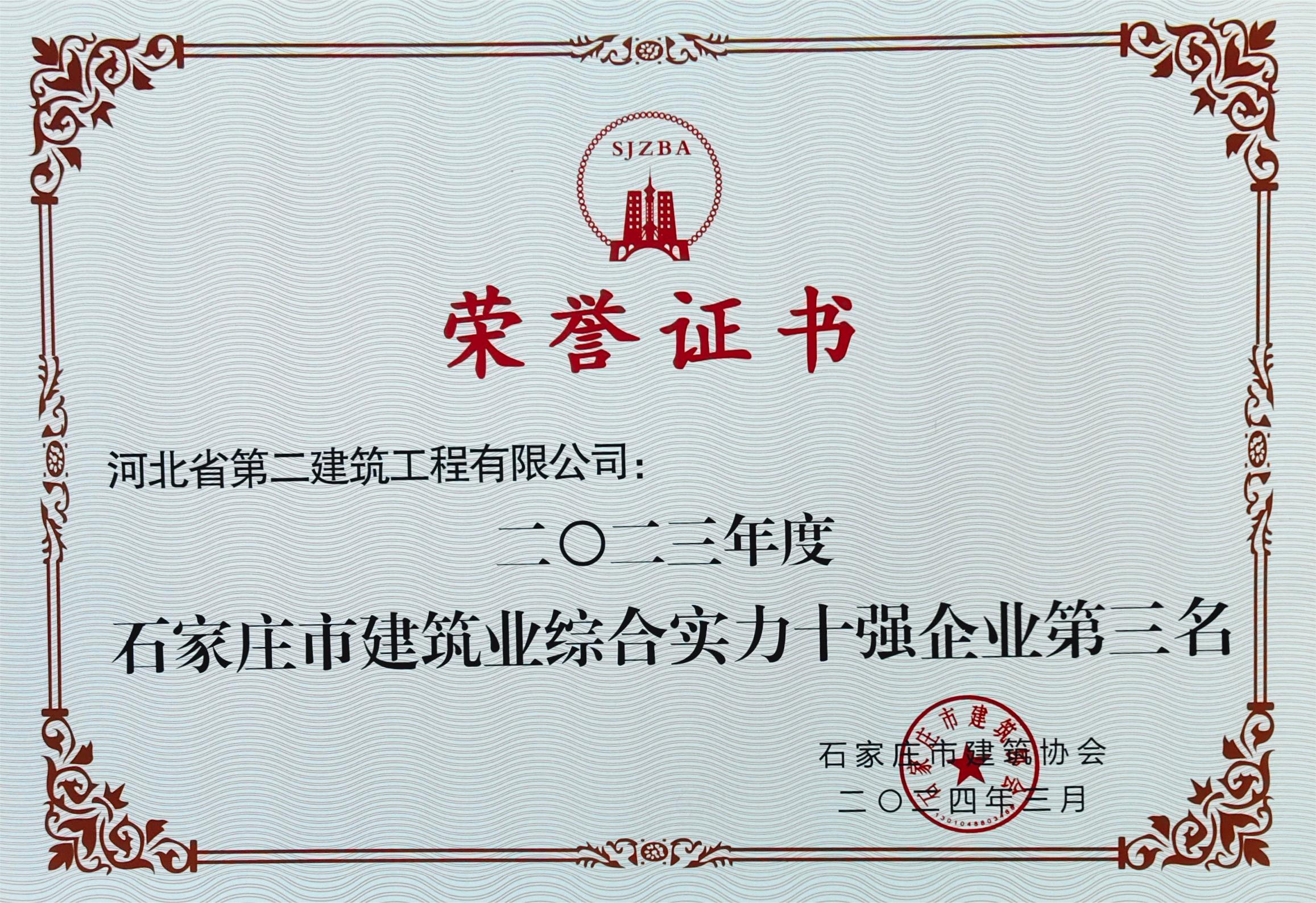 河北二建:2023年度石家庄市建筑业综合实力十强企业第三名